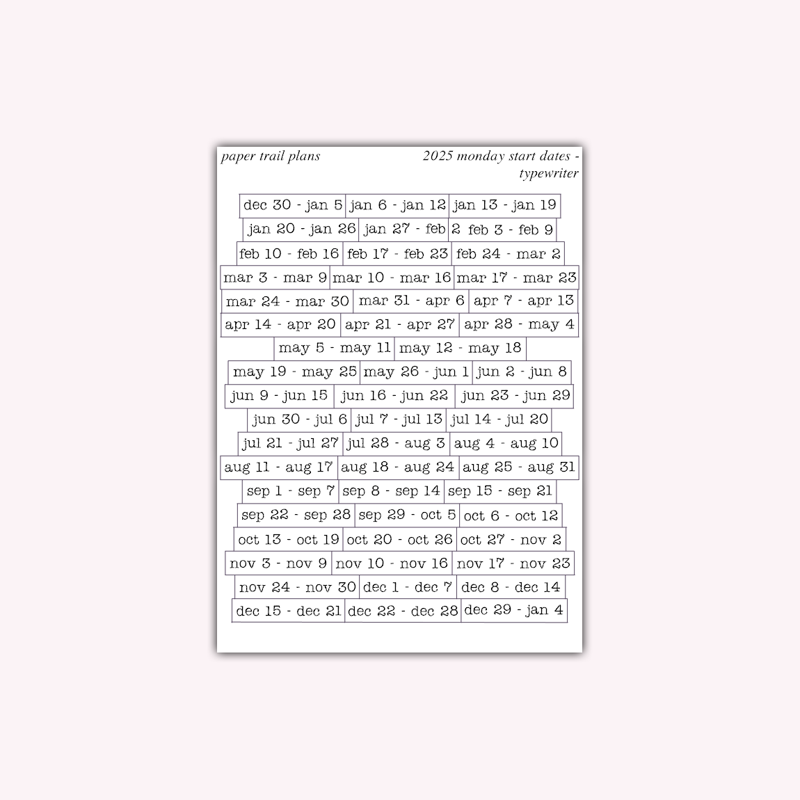 2025 Monday Start Dates - Typewriter