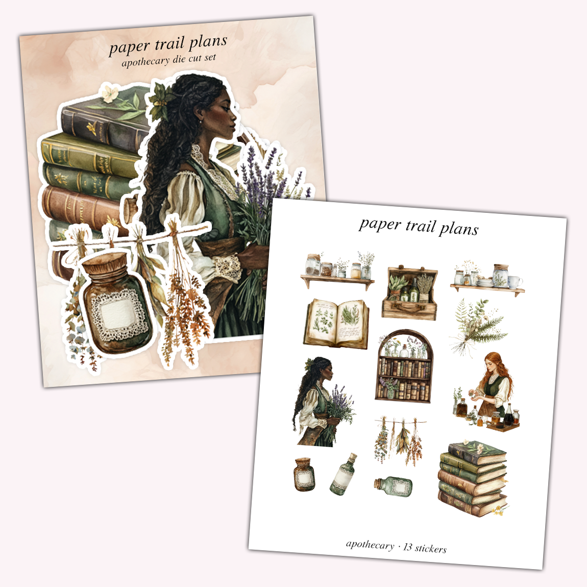 Each sticker varies in size from 2-4", and the sets are available on premium matte, transparent matte, or washi paper. Refer to the second listing photo for a closer look at each sticker this set includes.
