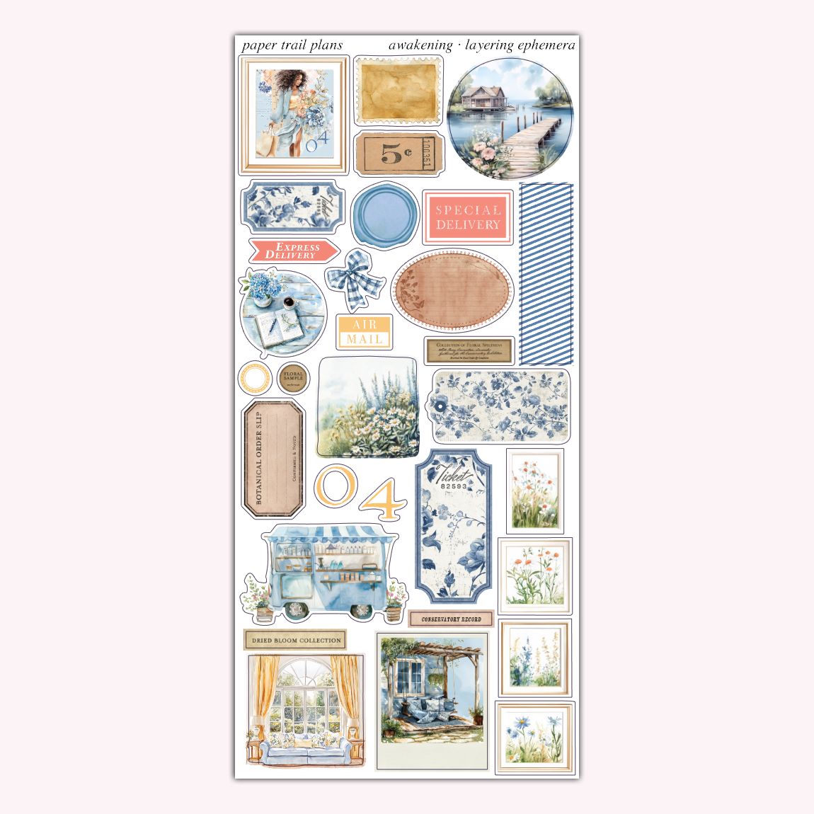 This deco add-on sheet measures 3x7", and coordinates with the Awakening collection.