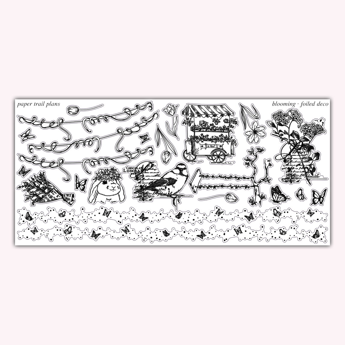 These stickers are available in black (no foil), light gold, traditional gold, silver, rose gold, and holo foil.