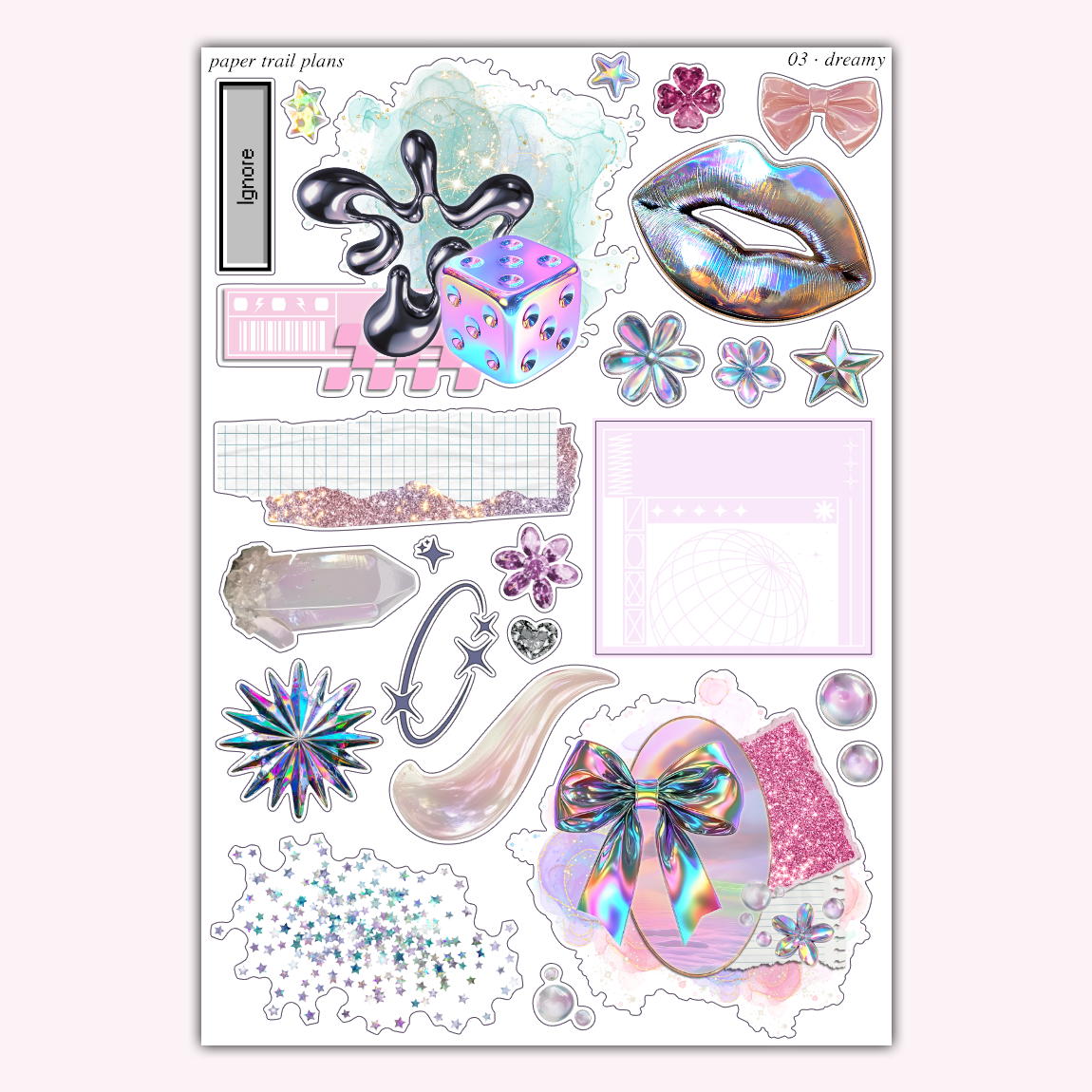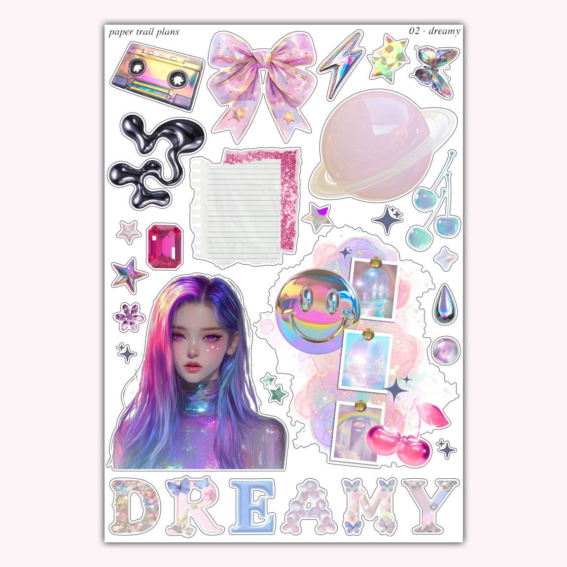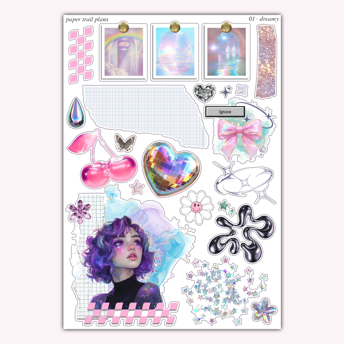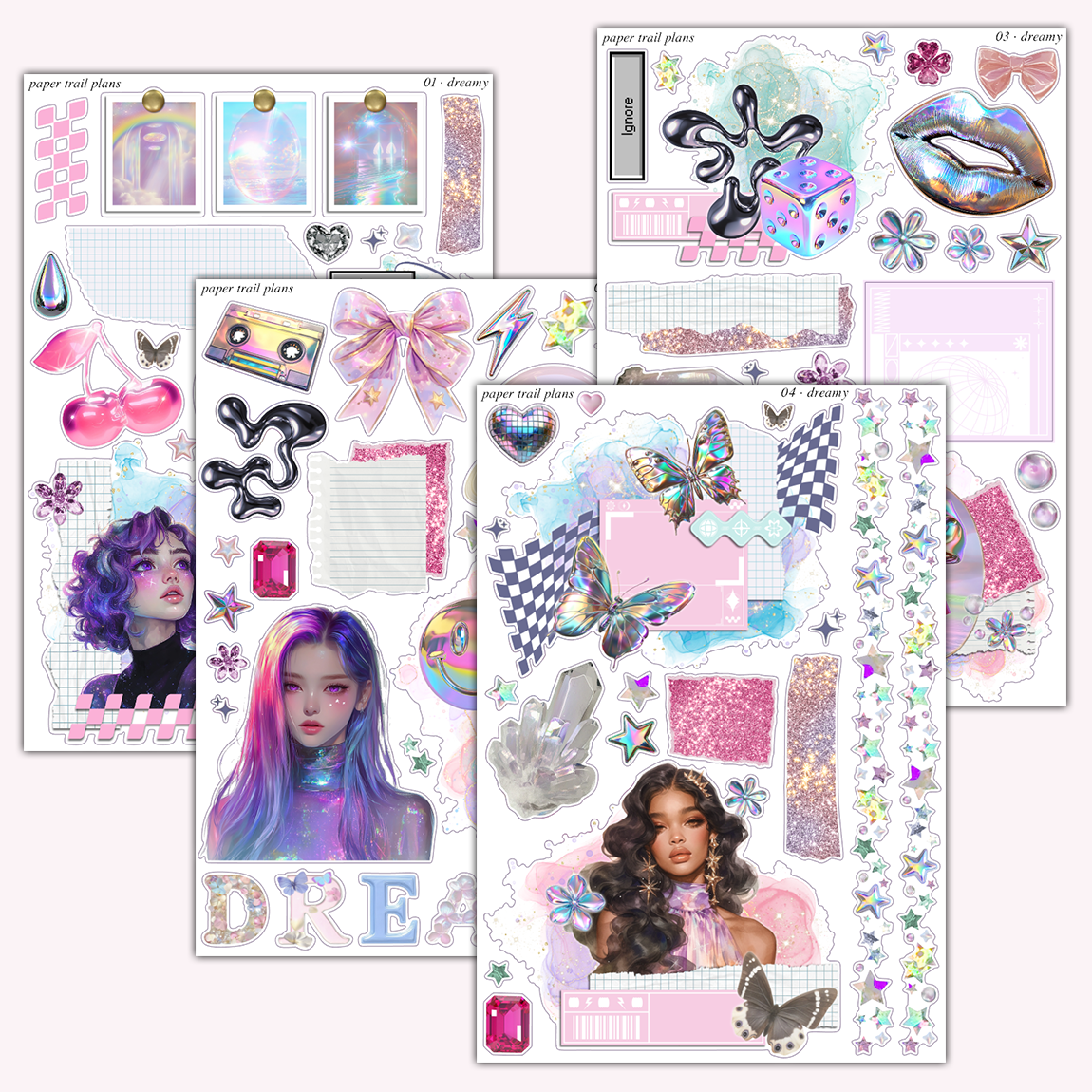 “Dreamy” is one of our new Capsule Collections! This collection is versatile for any style of journaling or planning. Available as deco bundle of 4 sheets, or à la carte!