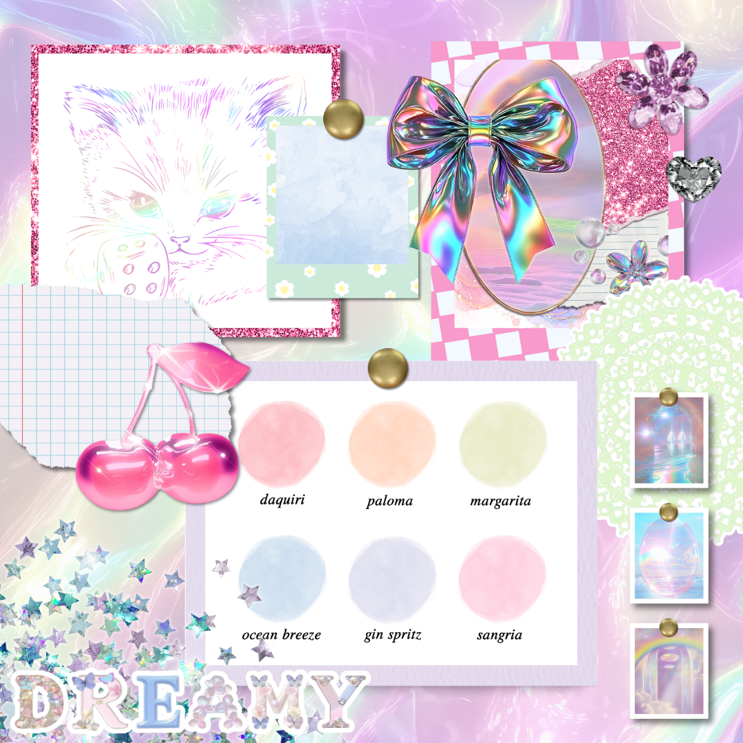 Our capsule collections were also designed to coordinate well with our functional sheets, like lace doilies, alcohol ink, & washi strips. “Dreamy” perfectly pairs with our summer color palette, especially “Margarita” & “Ocean Breeze”.