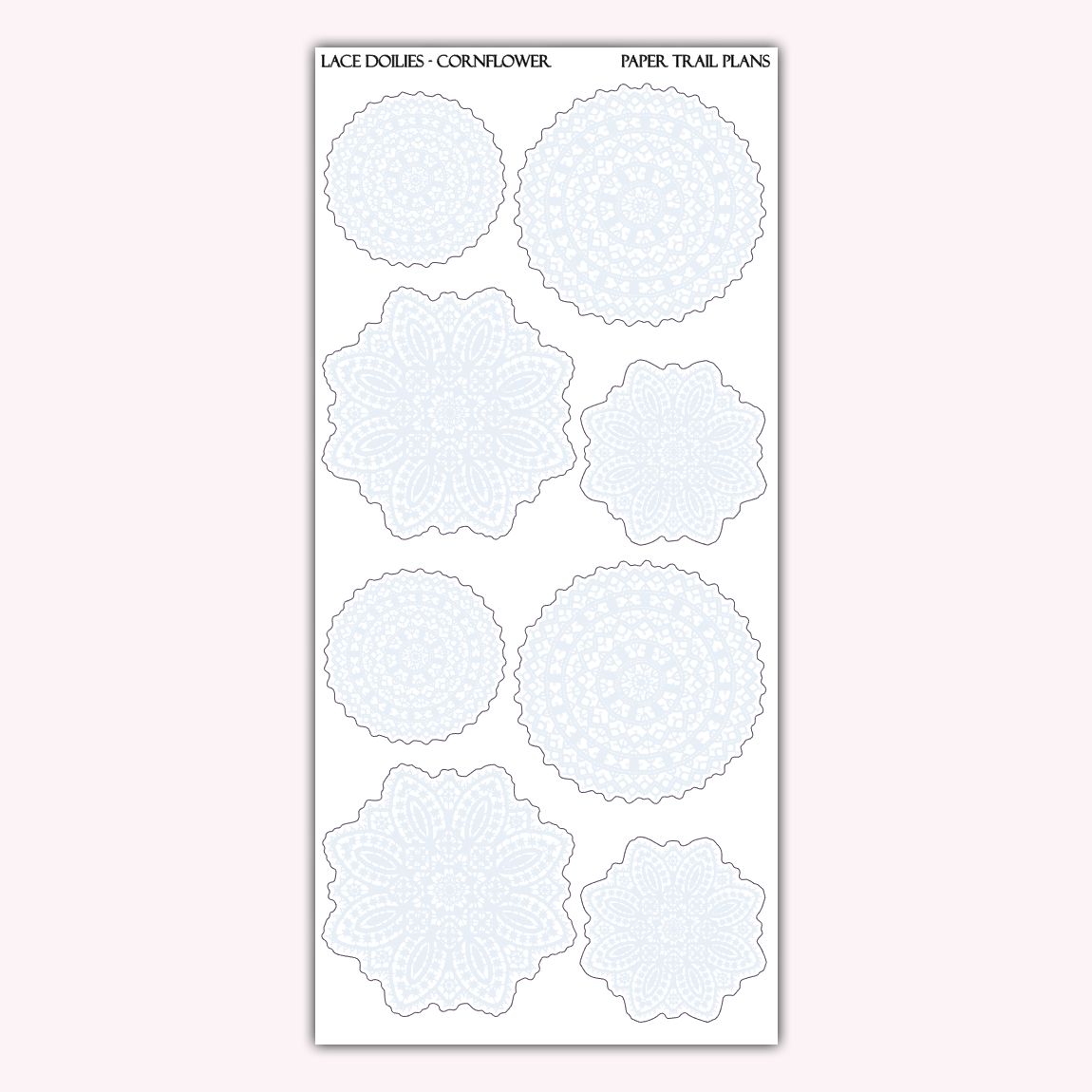 This sheet measures approximately 3x7", and includes 8 lace doily shapes.