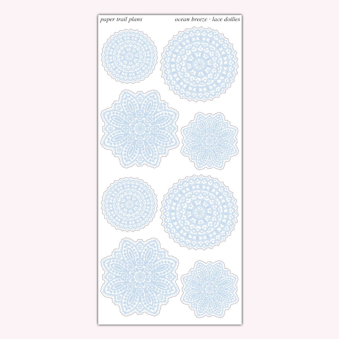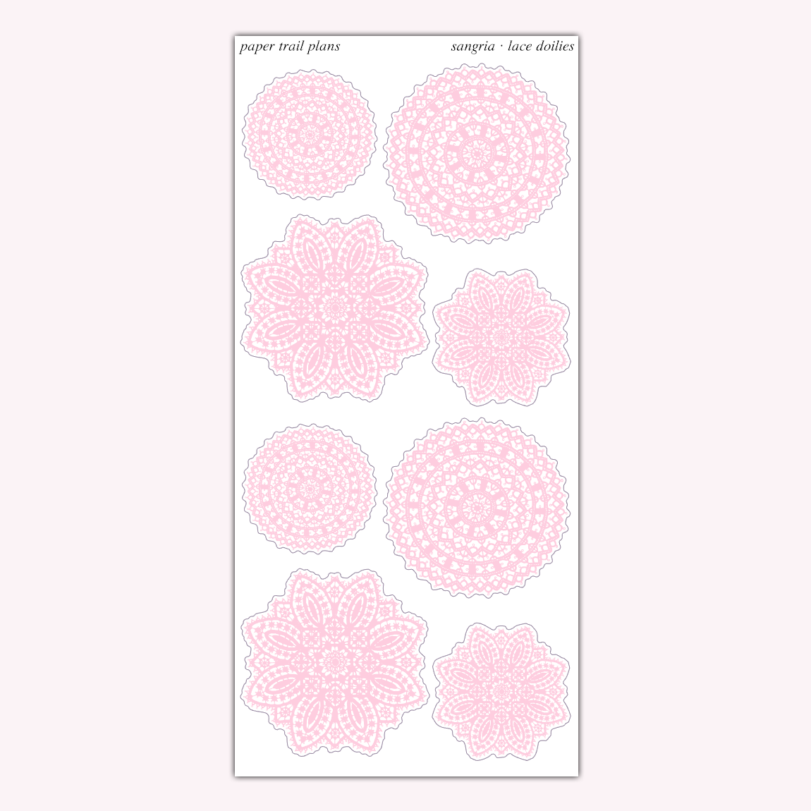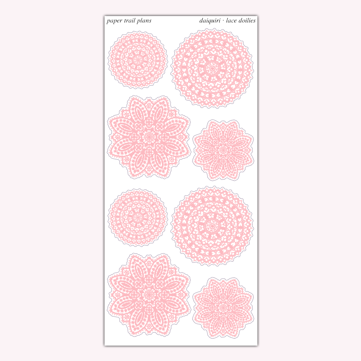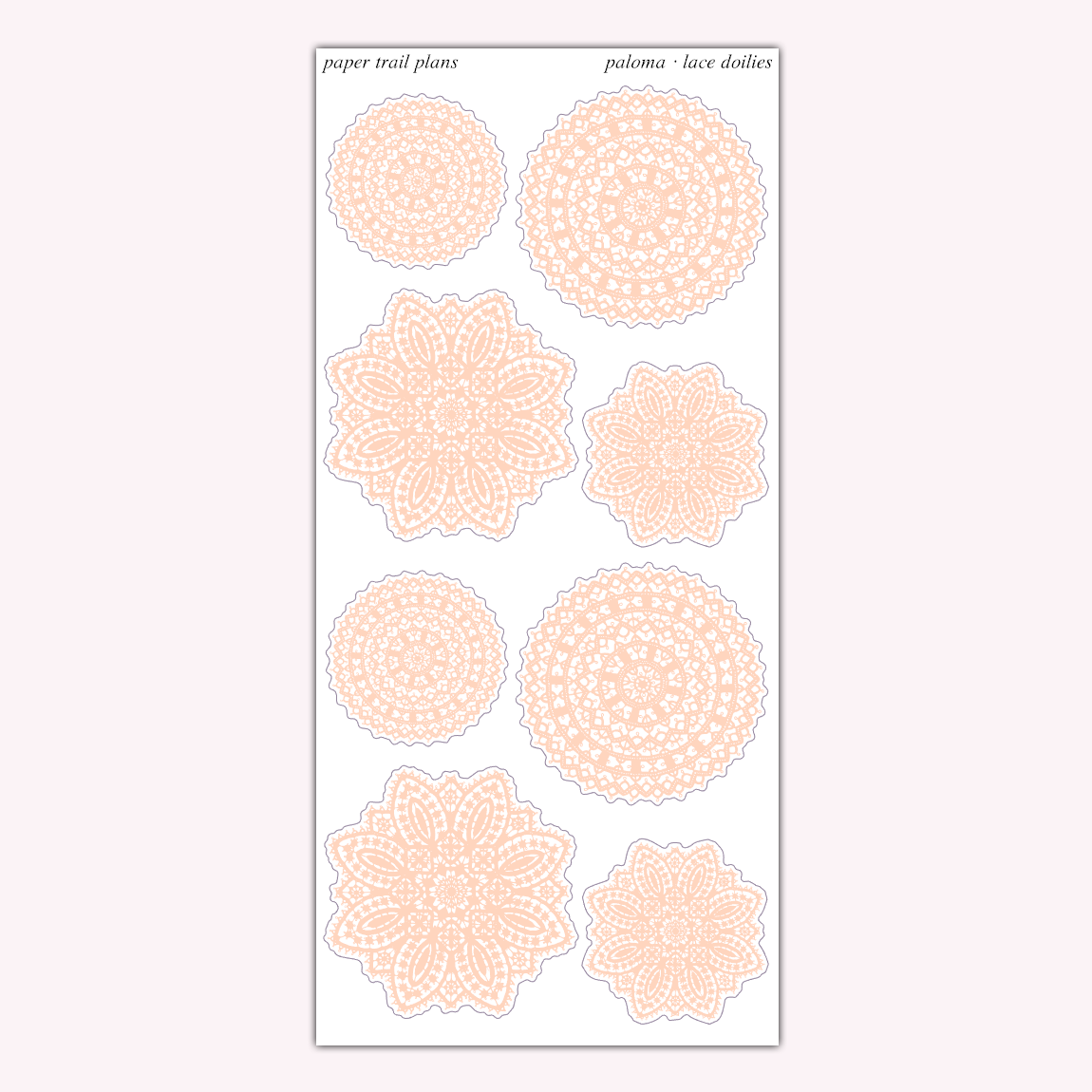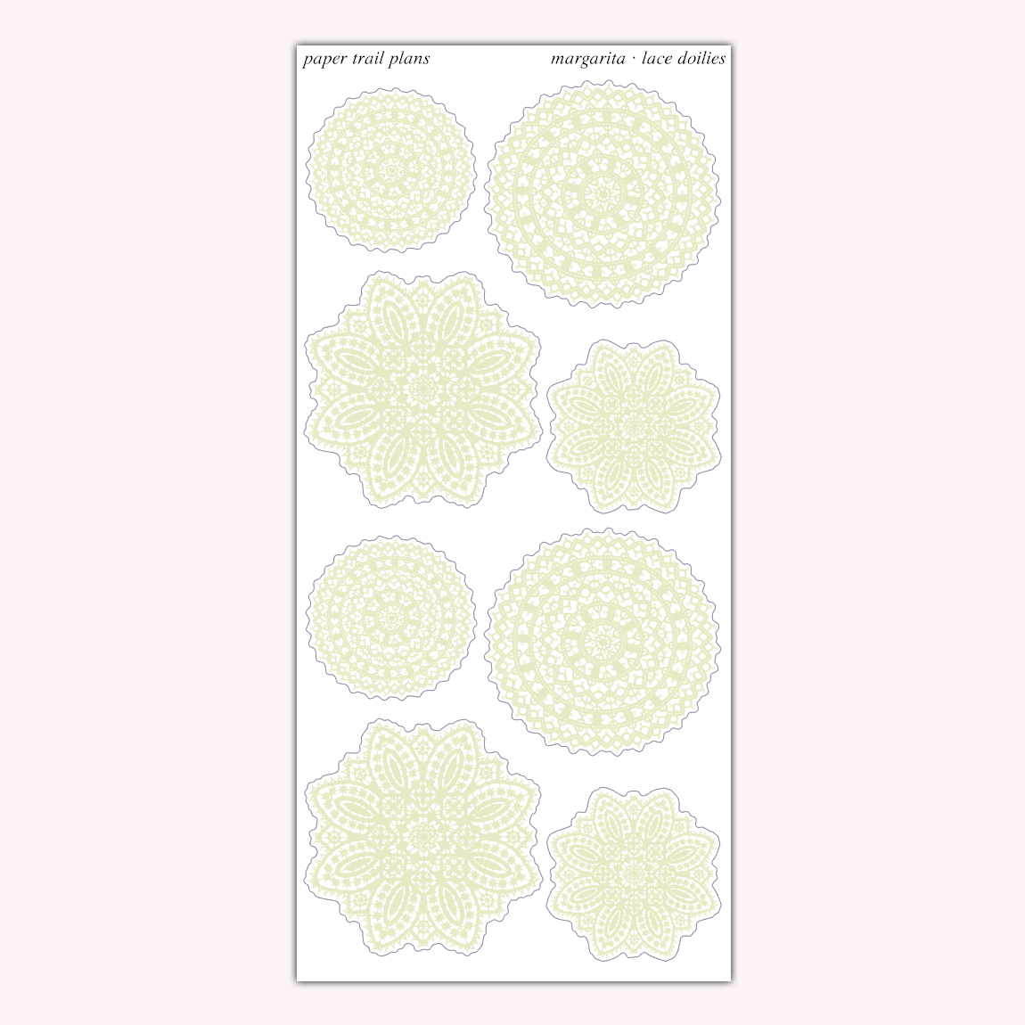 This sheet measures approximately 3x7", and includes 8 lace doily shapes.