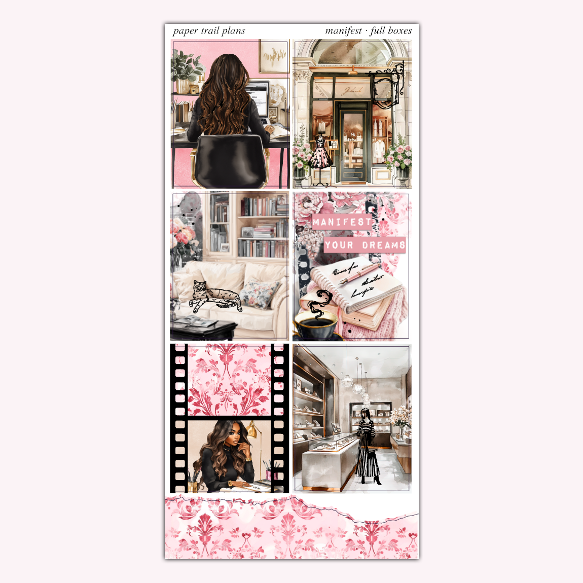 This sheet measures 3x7", and contains 6 full boxes sized 1.5x1.9". Black elements in the listing photo will be foiled in your choice of foil color.