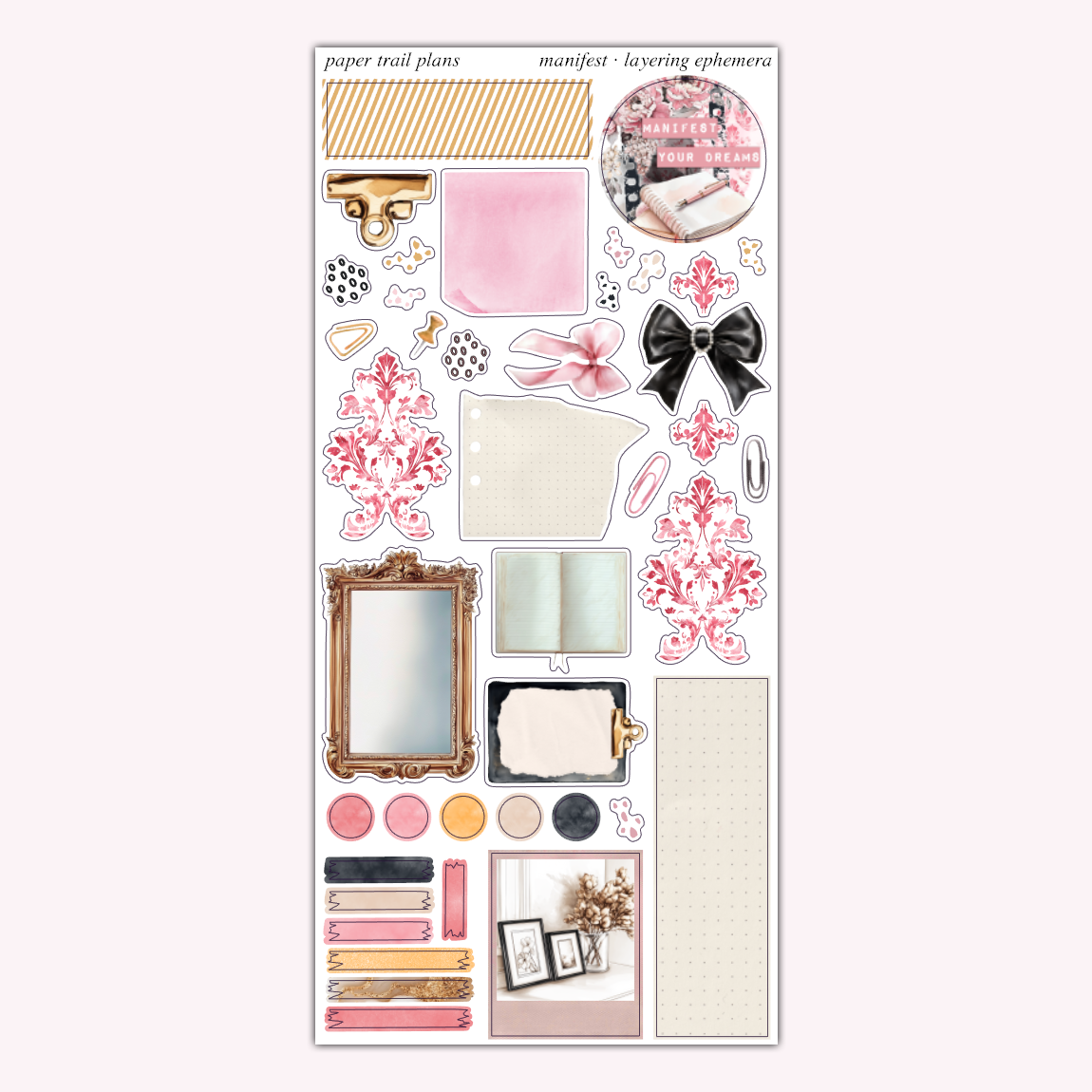 This deco add-on sheet measures 3x7", and coordinates with the Manifest collection.