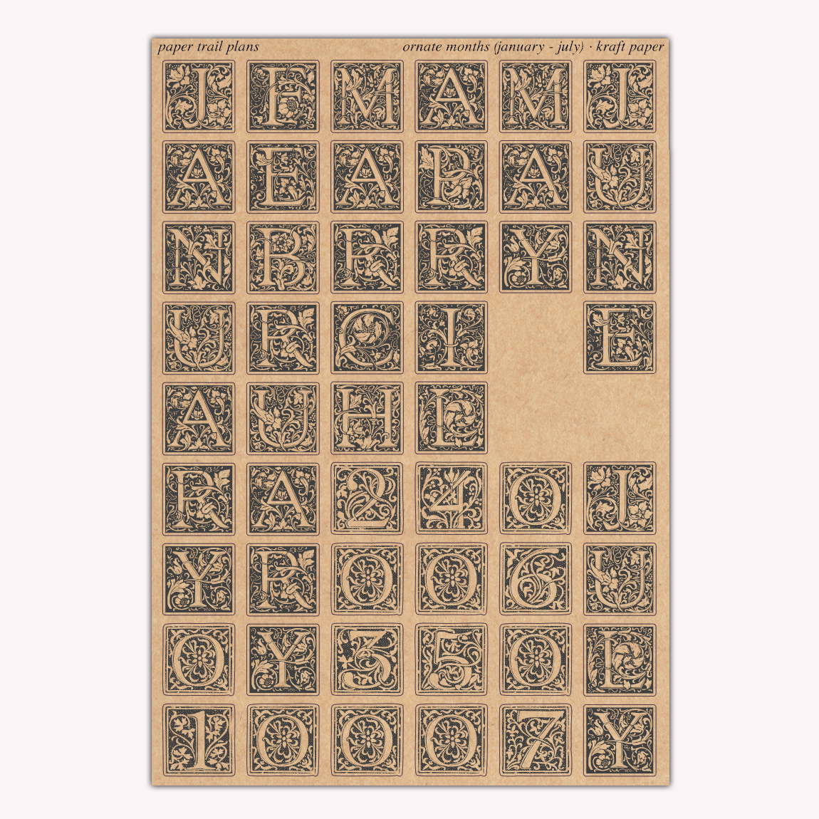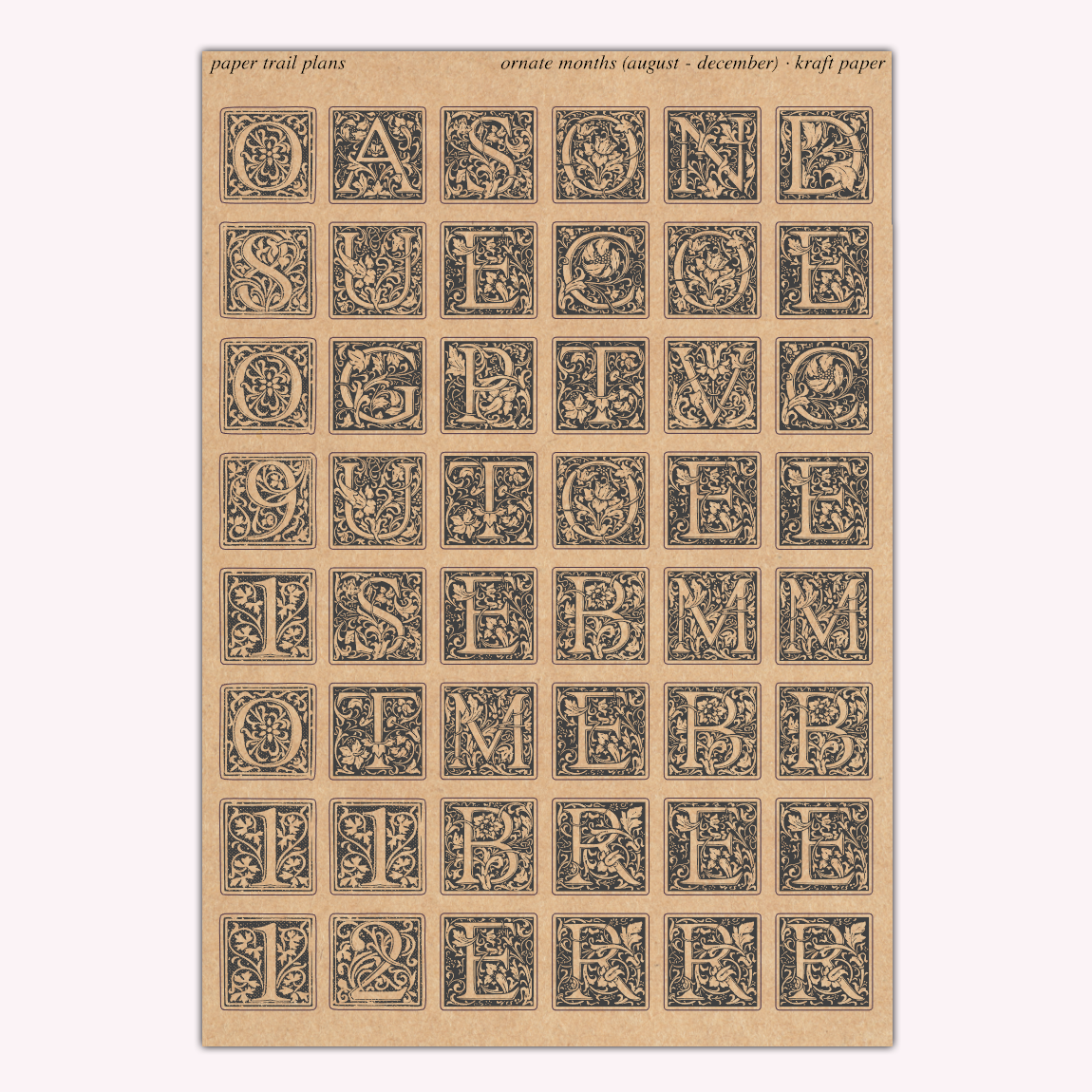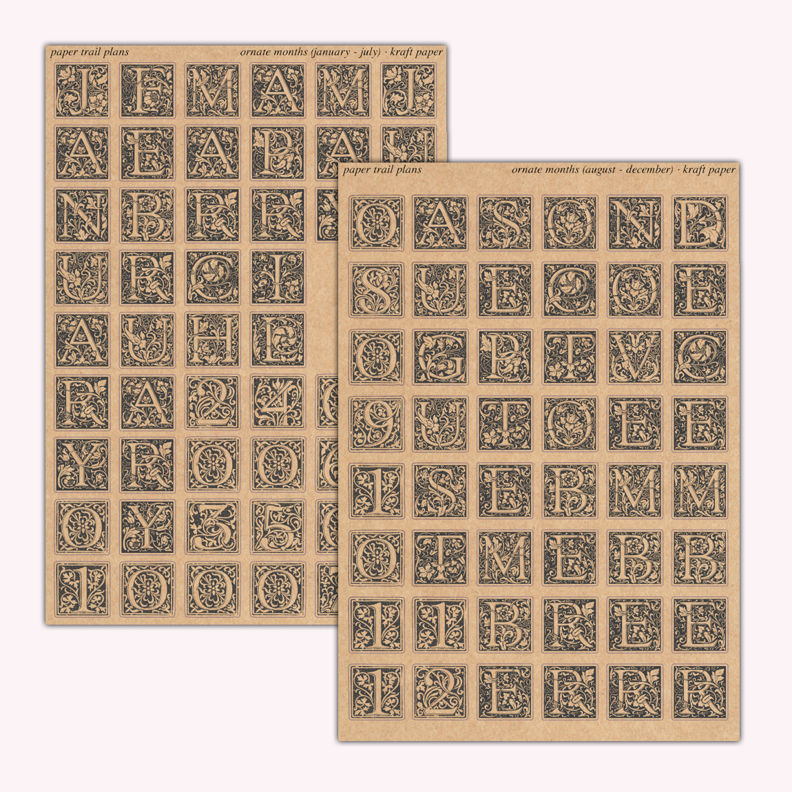 Ornate Months - Kraft Paper