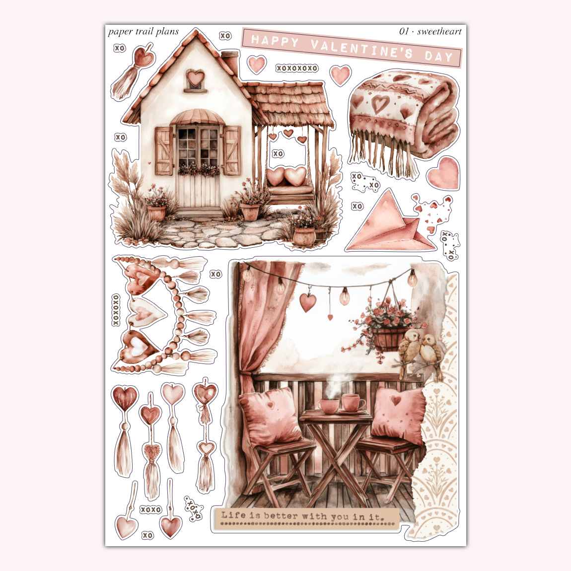“Sweetheart” is one of our new Capsule Collections! This collection is versatile for any style of journaling or planning. Available as deco bundle of 4 sheets, or à la carte!