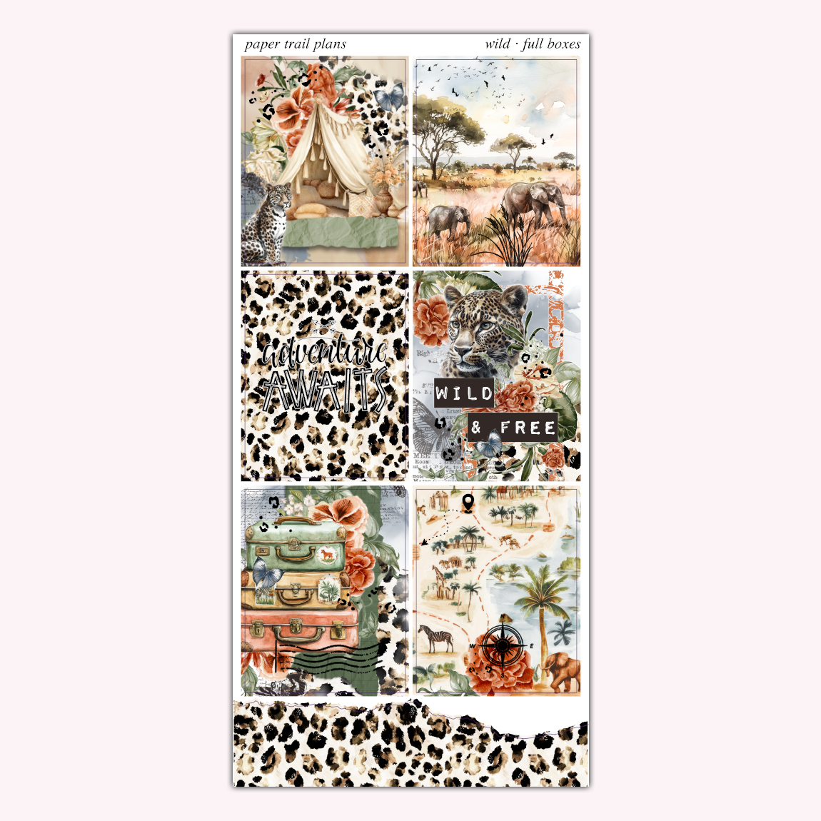 This sheet measures 3x7", and contains 6 full boxes sized 1.5x1.9". These designs coordinate with the Wild collection, which can be found here.